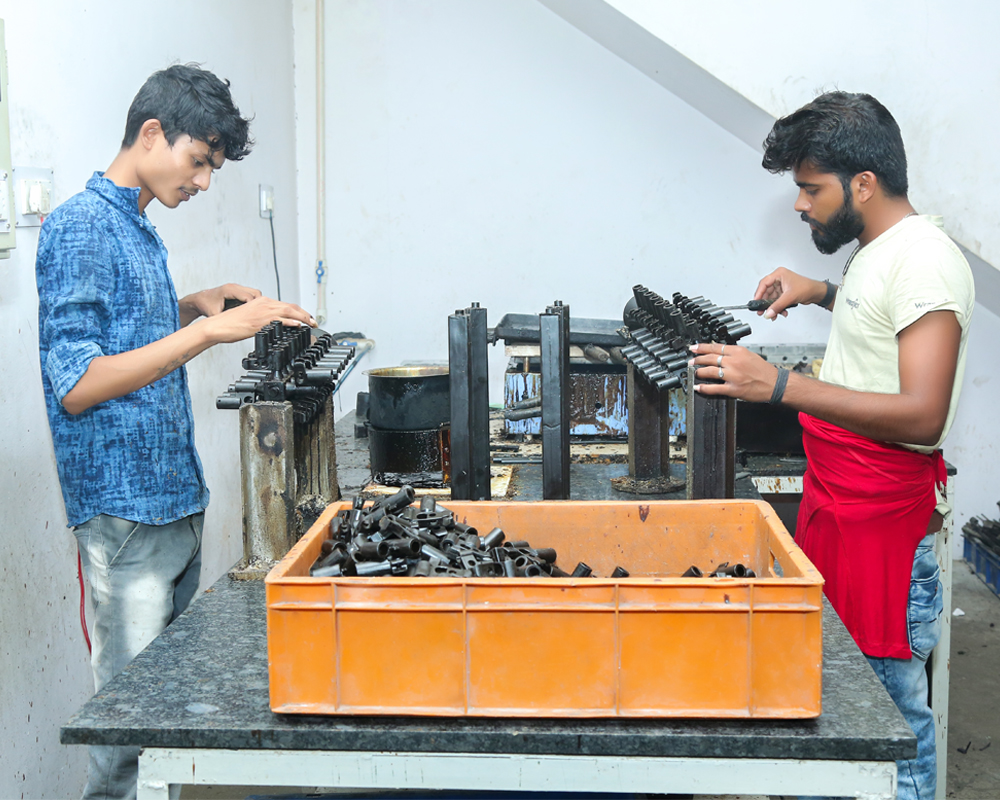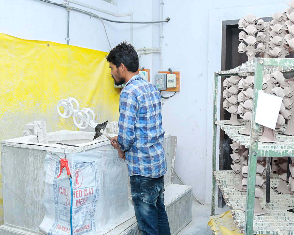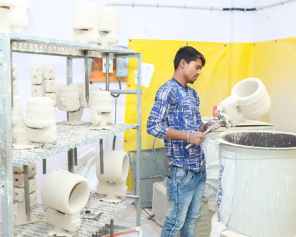 Then grind metal feeder of casting, finish it and total ceramic coating remove by blasting and chemical process done on inside & outside surface.