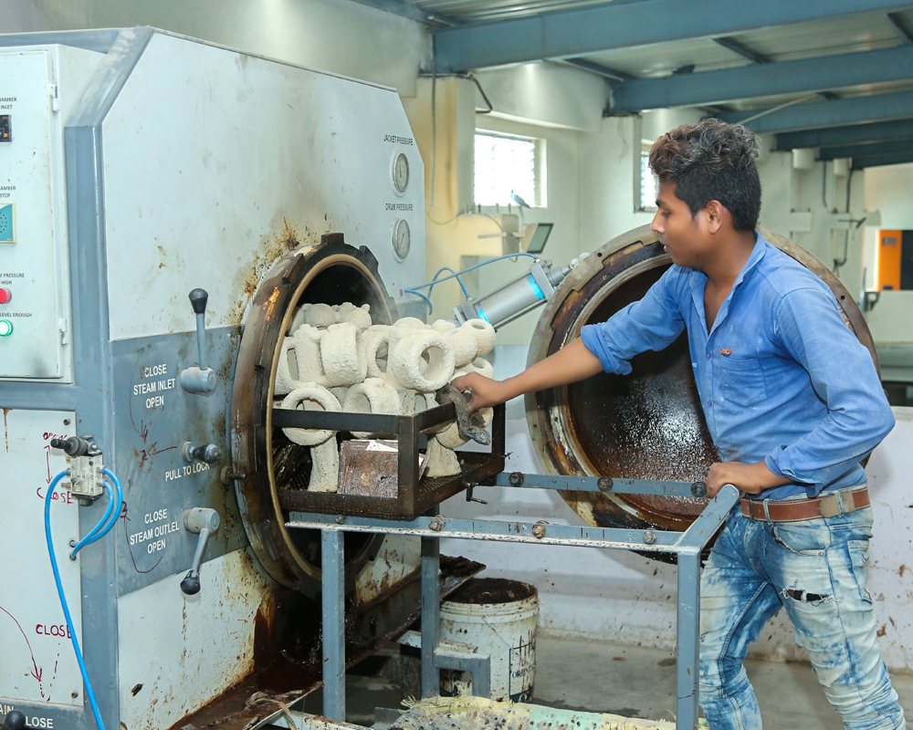 After total drying of ceramic shell cluster, remove inside wax by heating is called dewaxing.It creat cavity inside shell.